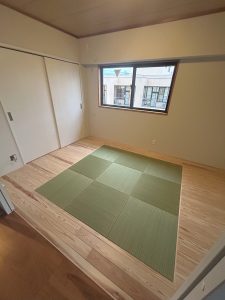 キッチン横の壁を取り払い、開放感のあるLDKにしました。リノベーション前のお部屋